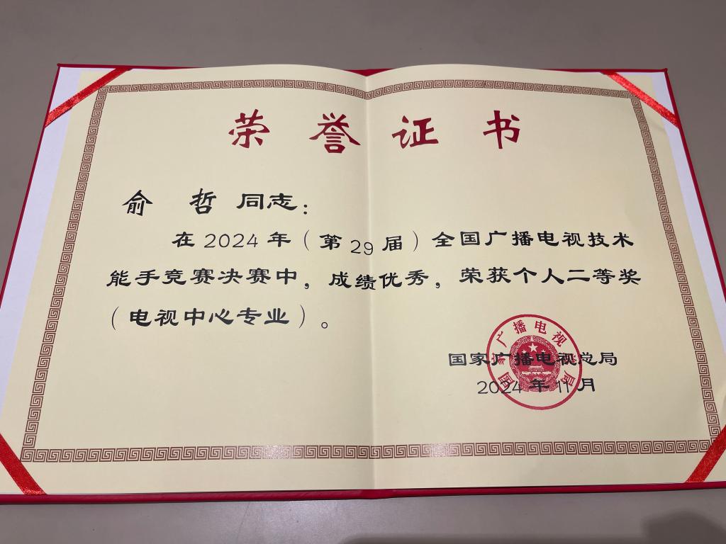 厚积薄发 芯光璀璨 | 我院优秀校友俞哲斩获全国广播电视技术能手竞赛二等奖